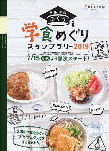 京阪沿線の学食を巡る「京阪沿線 ぶらり学食めぐりスタンプラリー2019」を7/15(祝・月)から開催します!集めたスタンプ数に応じて、京阪電車や大学のオリジナルグッズを抽選でプレゼント。