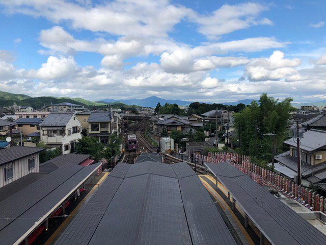 天龍寺方面や渡月橋、駅に出入りする嵐電も見え、絶景でした。