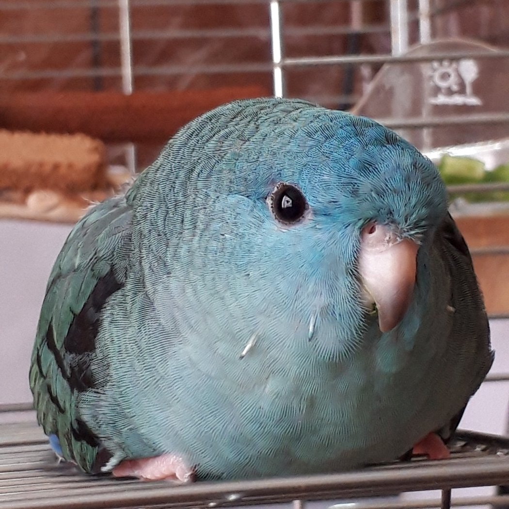 見てくださいこの頑固な顔を! 今朝うっかり「ママ今日病院行くからね」と言ってしまったらケージの入口に青い岩みたくなって居座ってしまいました💦 時計を見てるかのように出掛ける10分前に帰宅してくれましたが、鳥に行ってきますとか言ったらダメなのをつい忘れちゃうんです😅