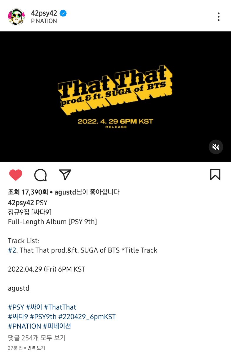 220626 SUGA Instagram comment
