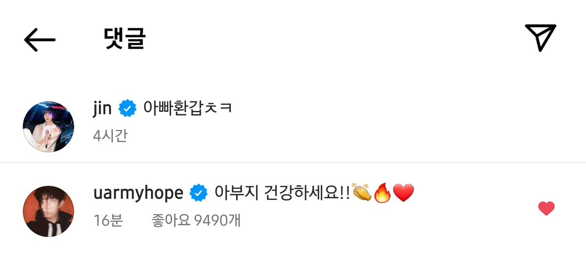ㄴ uarmyhope: 아부지 건강하세요!!👏🔥❤️