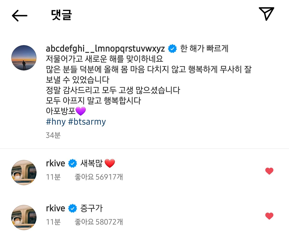220101 RM Instagram comments