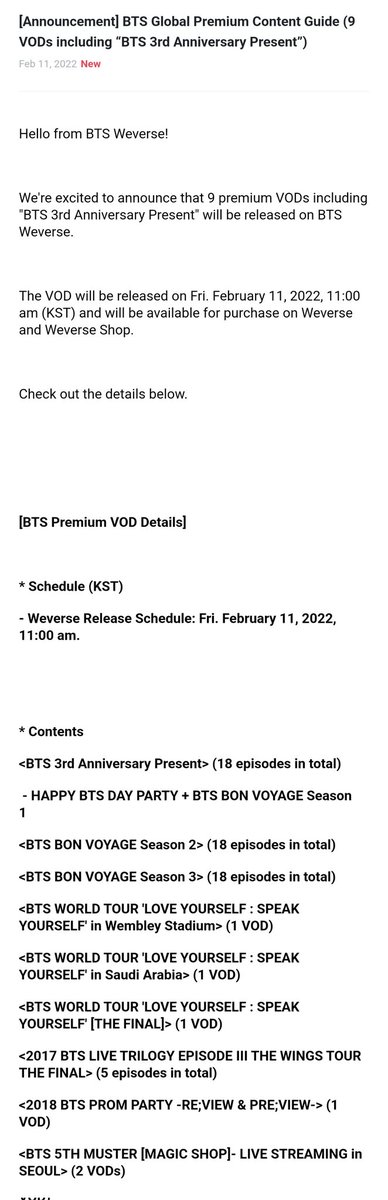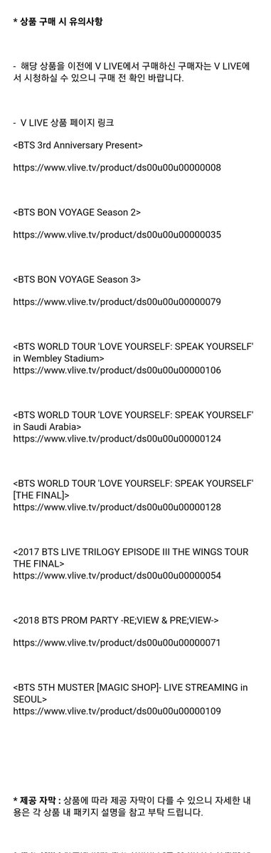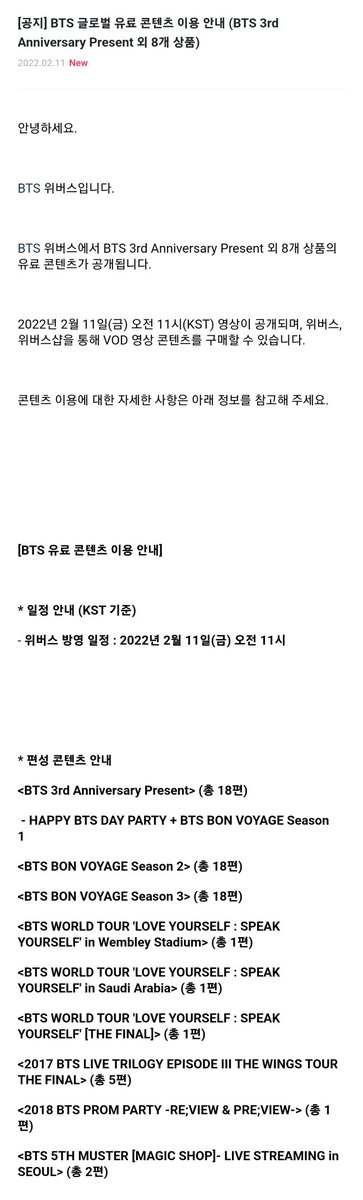 [공지] BTS 글로벌 유료 콘텐츠 이용 안내 (BTS 3rd Anniversary Present 외 8개 상품)