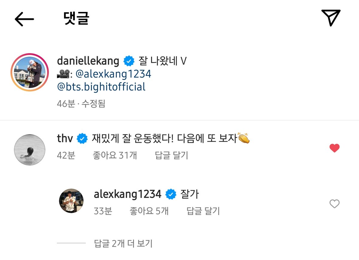 ㄴ thv: 재밌게 잘 운동했다! 다음에 또 보자👏