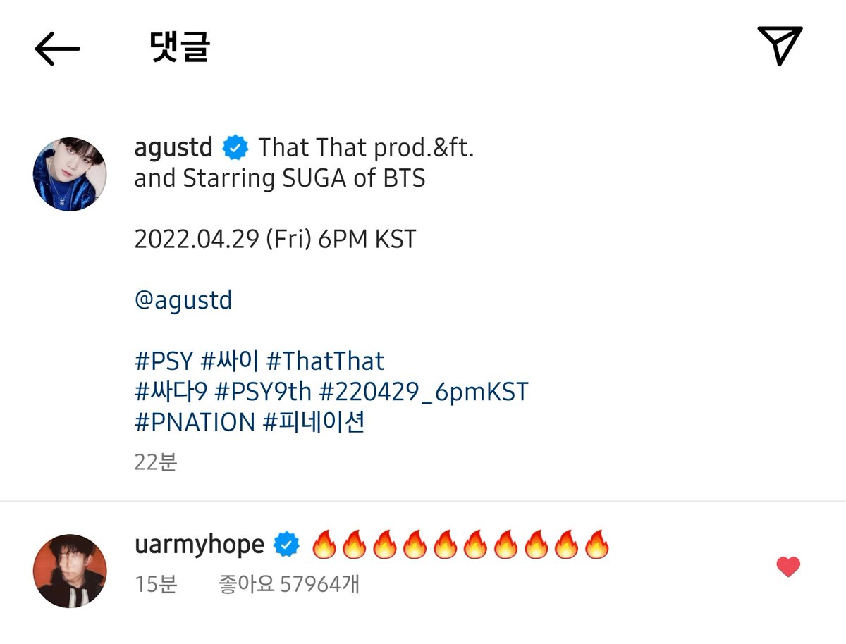 220428 SUGA Instagram & j-hope comment
