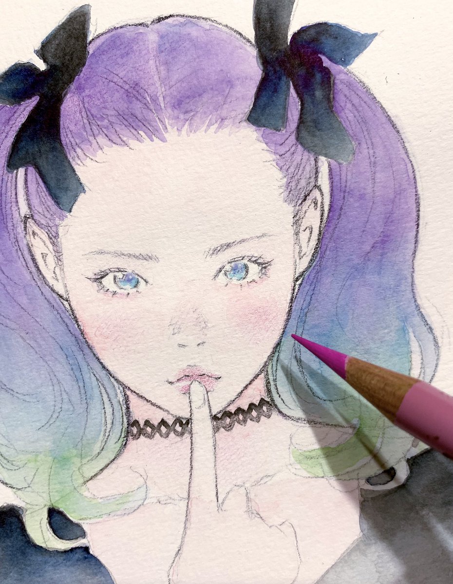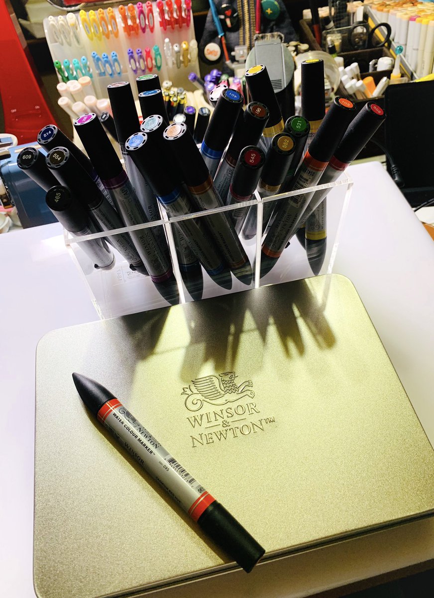 Winsor & Newton ウォーターカラーマーカーで着彩。色鉛筆との相性もよろしおす。