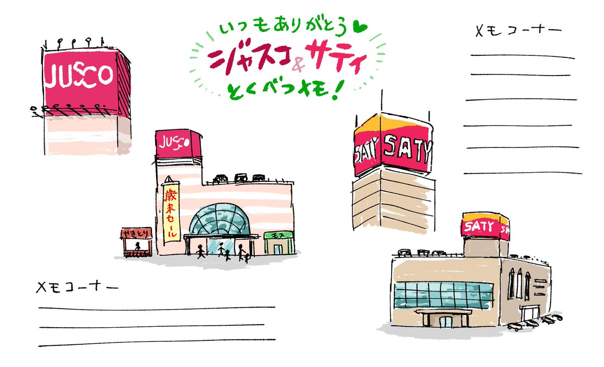 人類の皆様へ! 日頃の人類への感謝を込めて、ジャスコとサティのメモをプレゼントいたします!♪ぜひプリントアウトして、資源と時間を浪費してください。