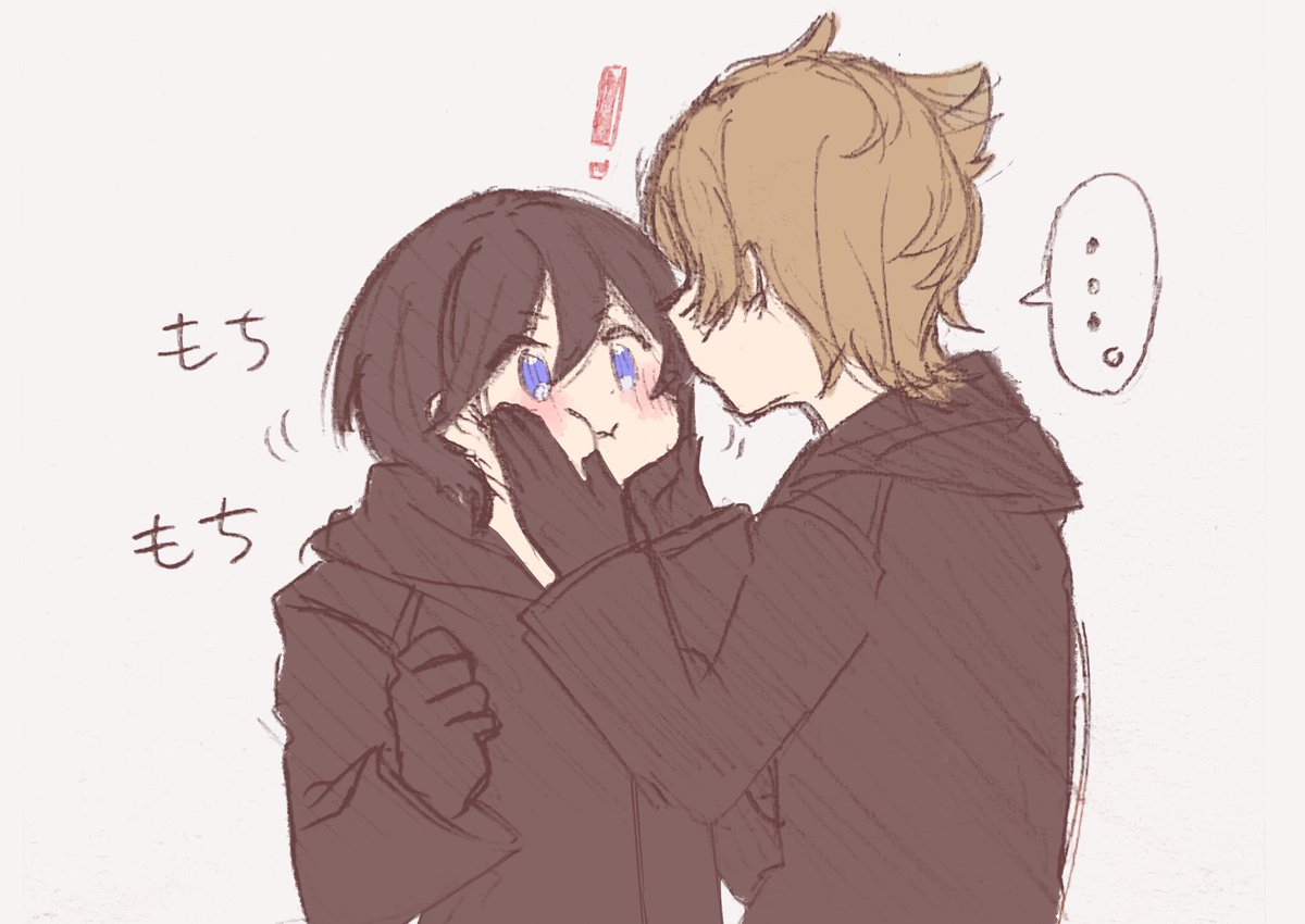 結構前に描いてたロクシオらくがき 無心でしおんのほっぺたをむにむにするろくさす