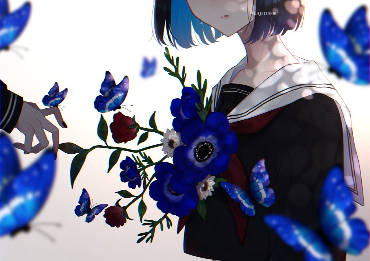 青色、花、蝶が特に好きです