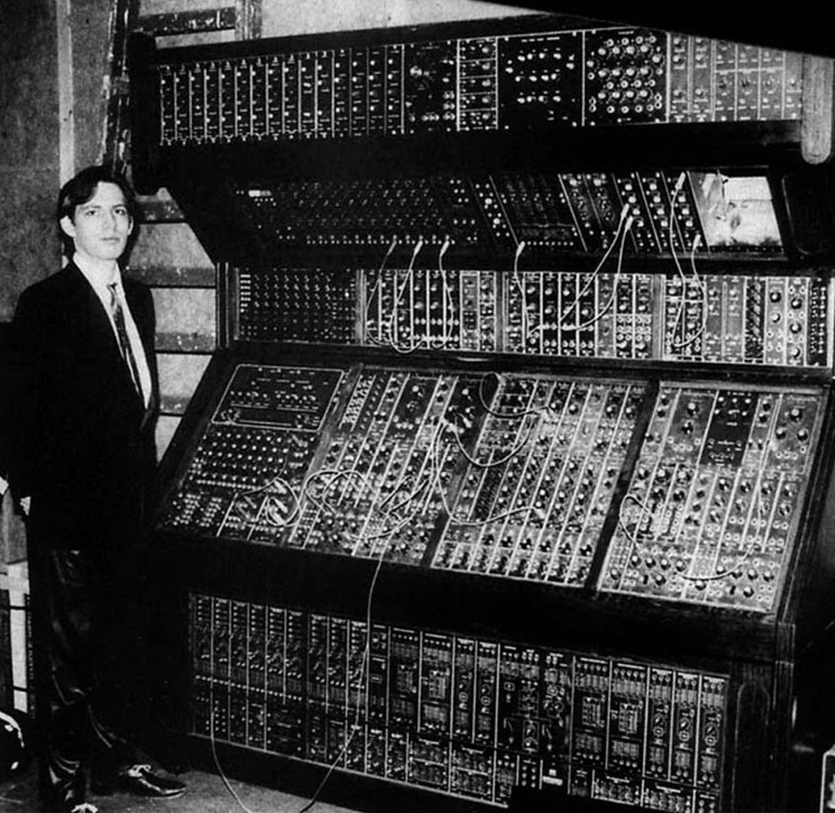 A young Hans Zimmer with his Moog modular system