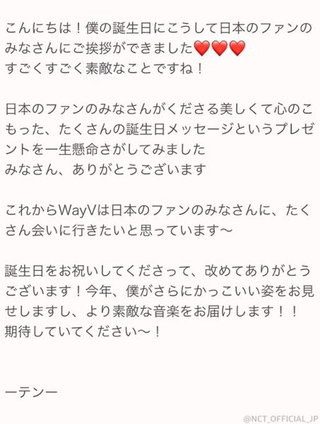 안녕하세요! 제 생일을 맞이하여 일본 팬분들에게 인사 드릴 수 있어서❤️❤️❤️ 너무너무 멋진 일이네요!