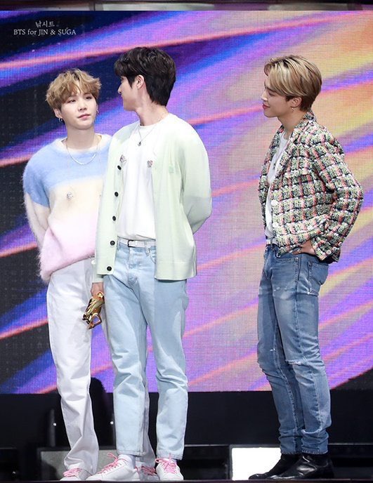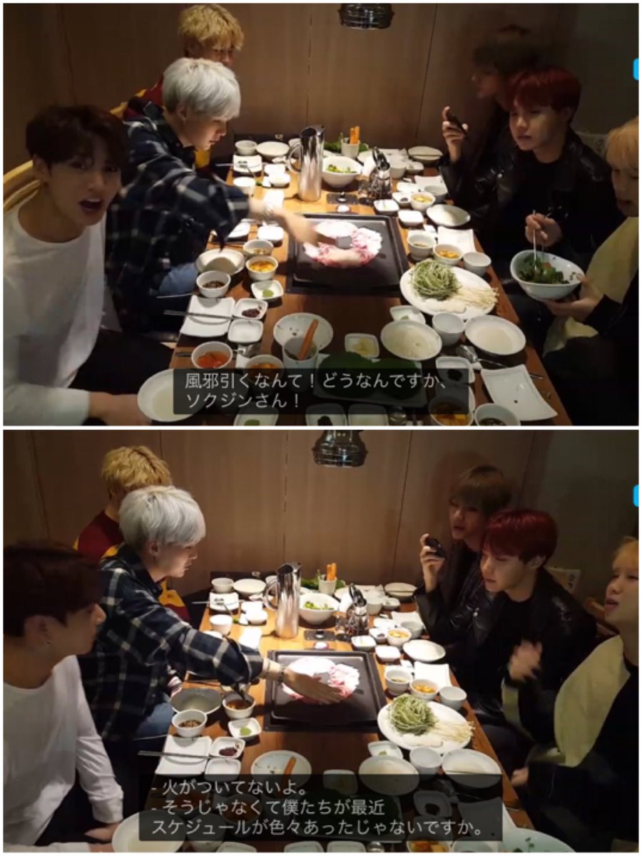 ナムがジンにょんの隣に座ろうとしたのに、ジンにょんの隣しか見ていないユンギさん....さすがです....