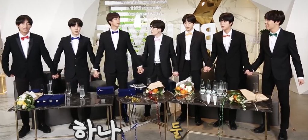 紙吹雪が頭の上に落ちたままのユンギが可愛くて仕方ないジンくん。可愛いから敢えてそのままにして置くんだけど、ユンギがアップされると、そっと取ってくれて、とことん優しいお兄ちゃんだった。