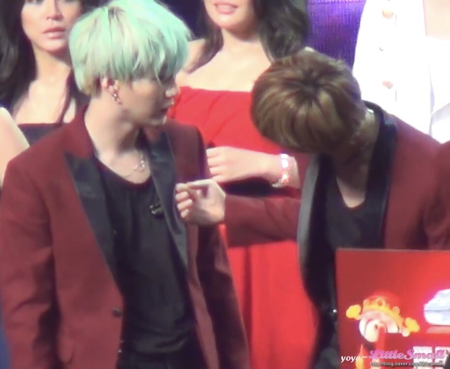2018GDA ポイントはジンくんがキスしたトロフィーに向かって無意識に手が出てしまったユンギ。