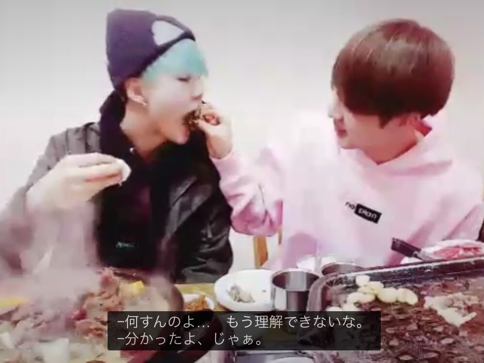 ジンくんがジャングルの法則に出演した時、荷造りでアミボムを持っていこうとするヒョンに、「どうしてそれ持ってくの?」と可愛いパジャマ姿で聞いてくるルムメのユンギ。SIN聖なるルムメ同士の何気ない会話が、ジンくんソロ出演の番組で見れてしまうこの特別感凄く好き☺️