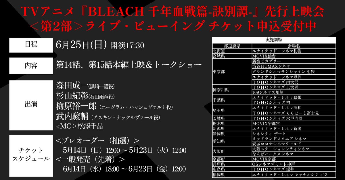 以下の放送局で #BLEACH 千年血戦篇-訣別譚- の放送が追加決定!