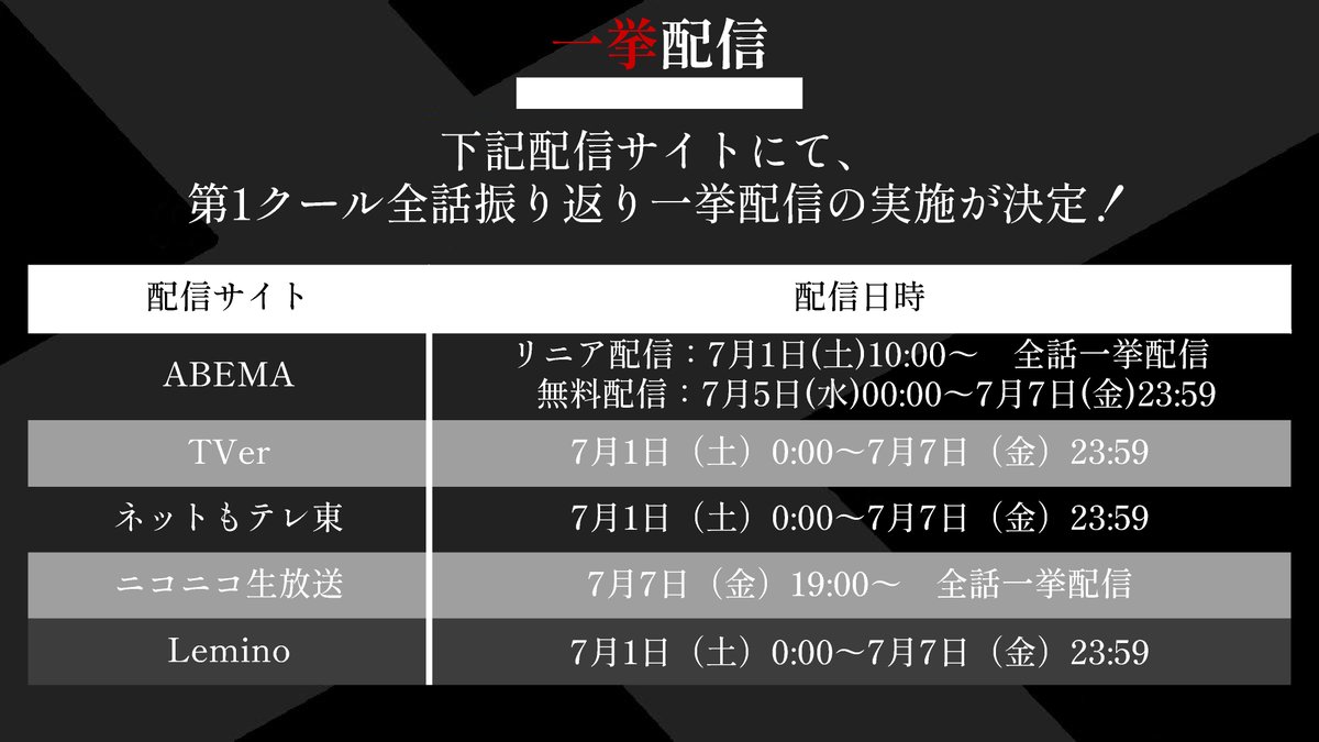 第1クール一挙配信決定🎉