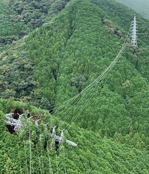9月24日10:00現在、静岡県内で約115,550戸のお客さまが停電しております。大変ご迷惑をおかけしておりますことを深くお詫び申し上げます。巡視の結果、山崩れにより送電鉄塔2基が倒れていることが判明しました。土砂崩れの影響等により復旧には時間を要する見込みです。