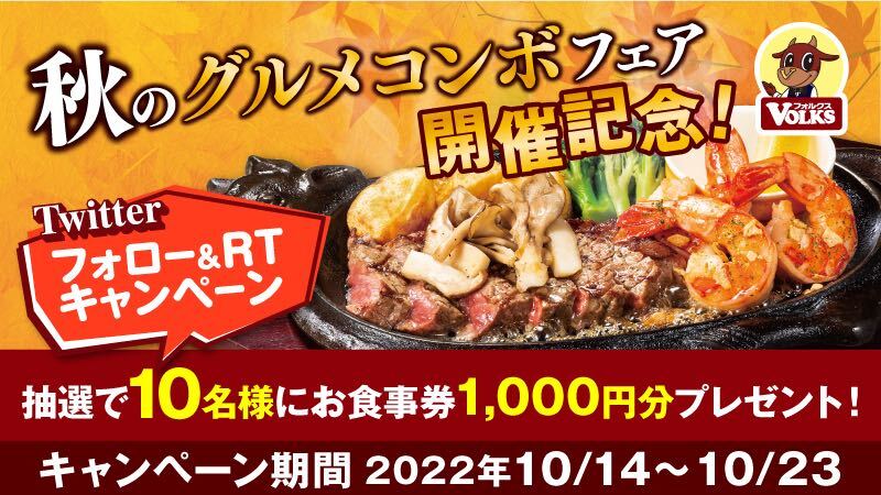 フォロー&投稿で #フォルクス のお食事券が当たる!