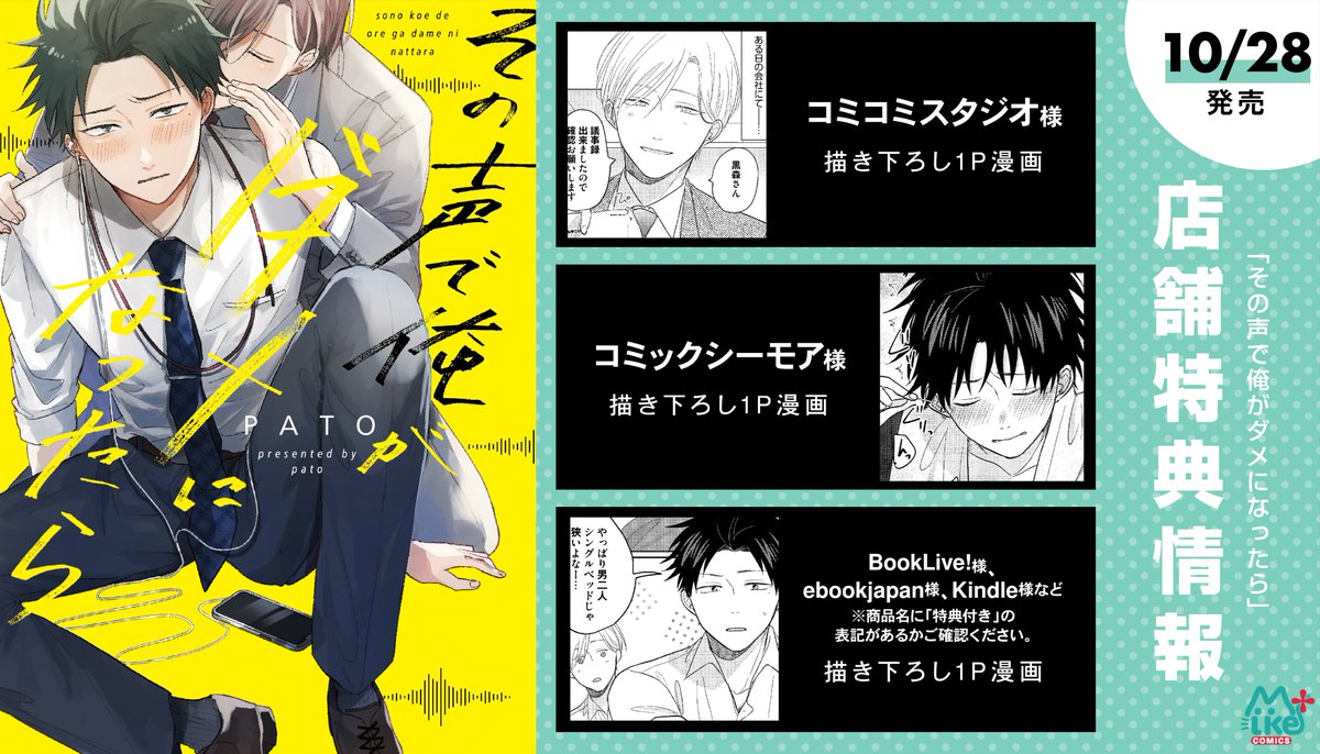 本日単行本、紙と電子同時発売です🥳✨ 耳が敏感な上司が後輩の声に反応してしまうことから始まる勘違い勃発BLです。 宜しくお願い致します❣
