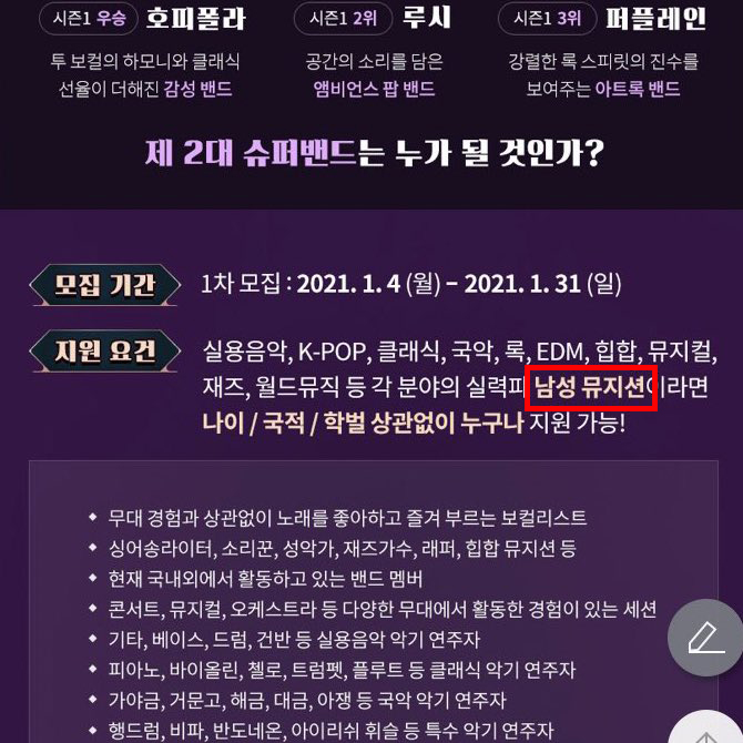 '남성만 지원 가능'? 돌아온 '슈퍼밴드' 또 성차별 논란