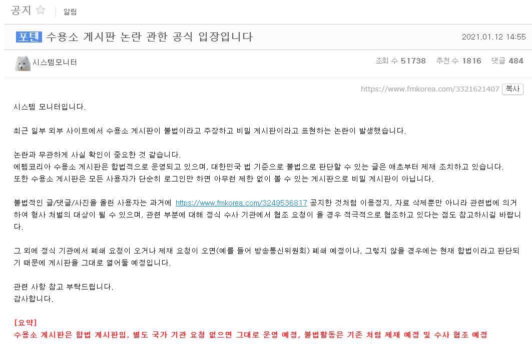 "합법" 주장하던 운영진, 비판 거세자 폐쇄 결정