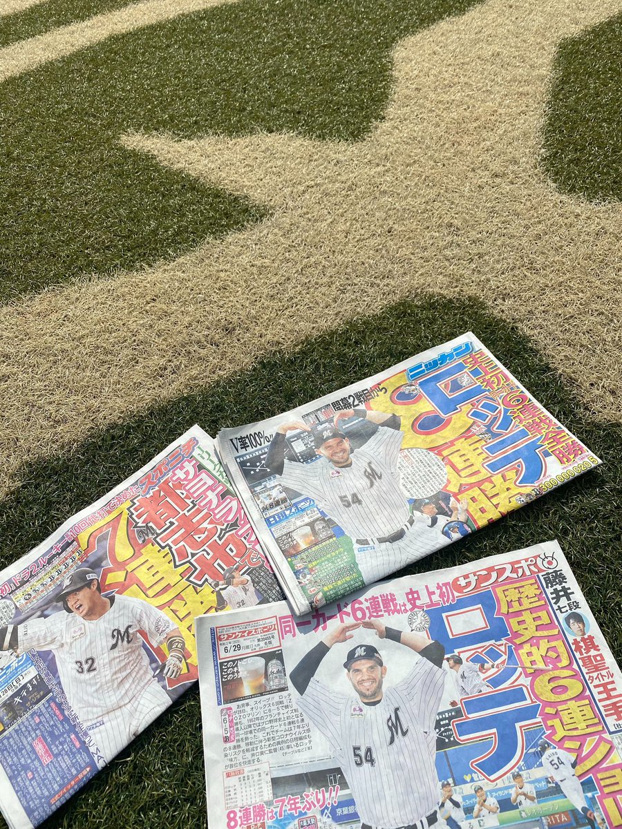 連日のスポーツ新聞各社の一面報道!ありがとうございます😊日刊スポーツの見出しはV確率100%‼️(広報) #chibalotte