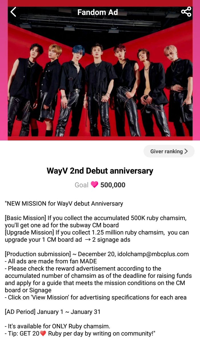 There's an event on IDOL CHAMP app to get WAYV a SUBWAY ADD for their debut anniversay!