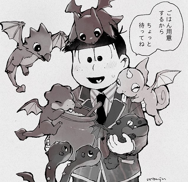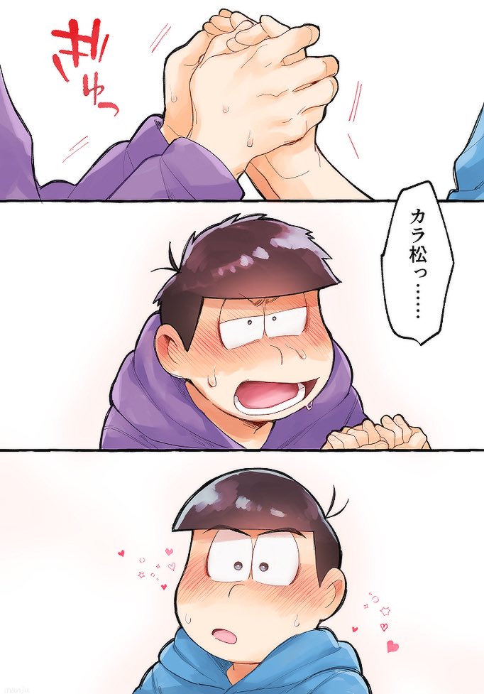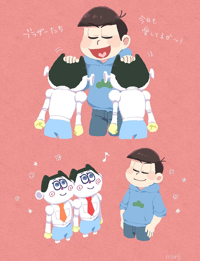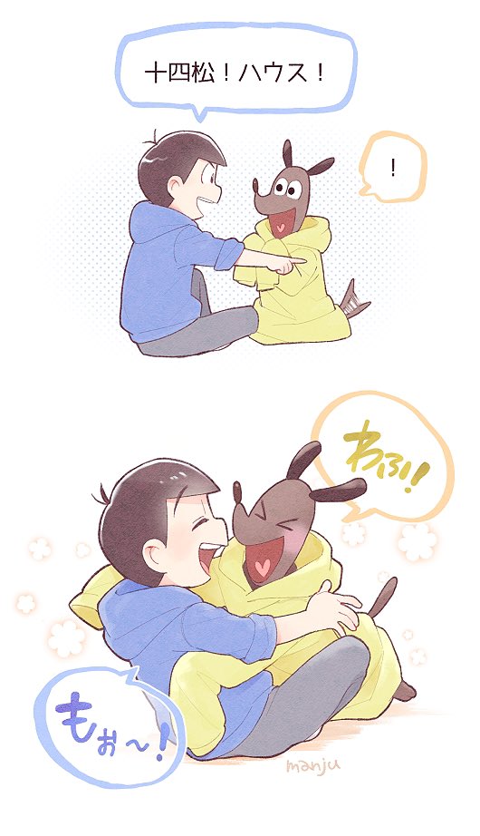 (6話)撫でられ待ちの🍙🍙と嬉しそうになでなでする次男くん本当に可愛い!そのあと飛びついてたのも可愛い