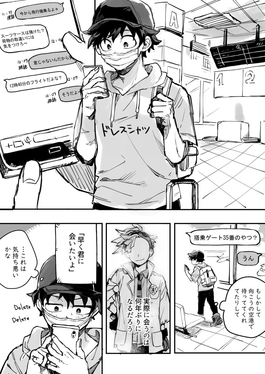 海外遠征先のホテルで別れの挨拶をする出ロデ+爆(轟爆) 謎時間軸 全体的に爆が優しい