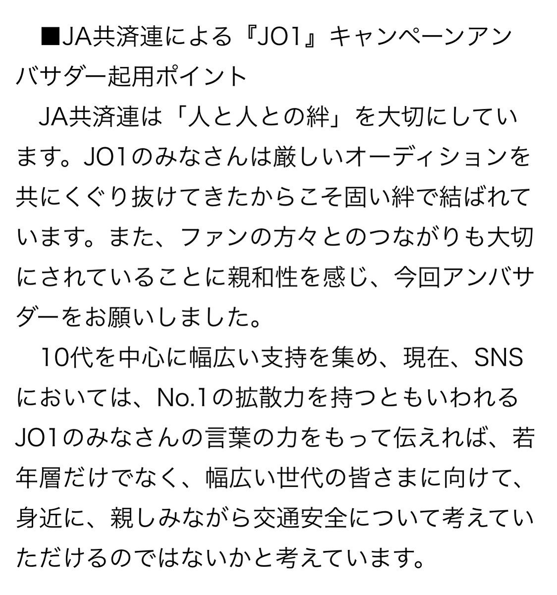 エッジラインさんの記事に起用ポイントも書かれてる #JO1