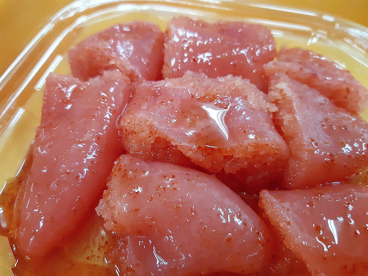 国産のイカ、柚子に明太子をたっぷり絡ませて、風味豊かに味わえる柚子いか明太子&脂がたっぷりのった鮭ハラスを特製ダレで漬け込み、明太子を絡ませた鮭ハラス明太子😆
