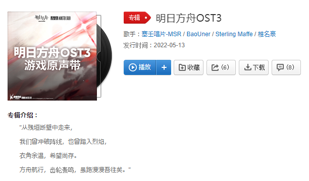 大陸公式より明日方舟OST3