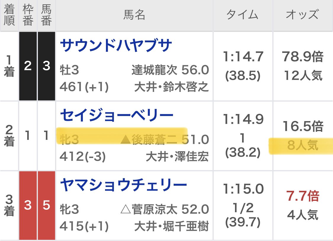 ◎ハヤヤッコ (18.8倍) 1着🎯