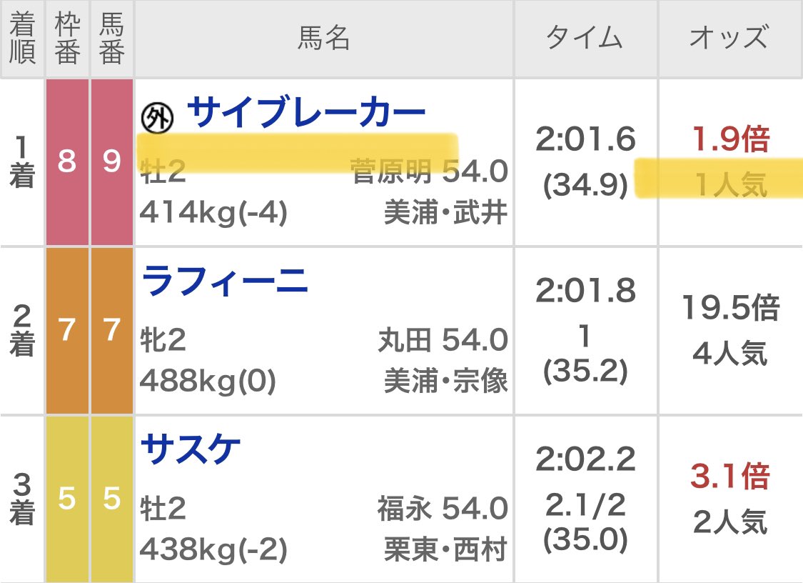 ◎ヒルノ(14.2倍) 🥇