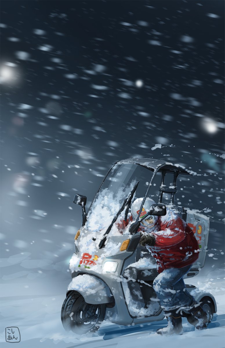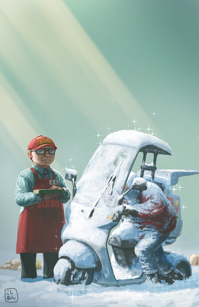 「雪の日はやっぱりピザだね♪」 「・・・・・・・」 「・・・あったかい・・・」 「よし!まだ、あったかい♪」
