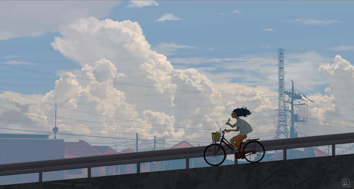 「夏は入道雲、アイスで自転車、坂道」