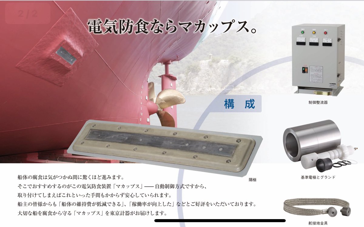 @sakesyubunken 電食について説明する必要があるのですが、海水こと食塩水と船の電気が加わると金属のイオン化傾向の高い部分から電気分解が生じます。鉄とアルミニウムが同じ電気が流れるところにあればアルミニウムから解けていく作用が発生します。船体であれば亜鉛板を取り付けておけばそこからどんどん溶けます。