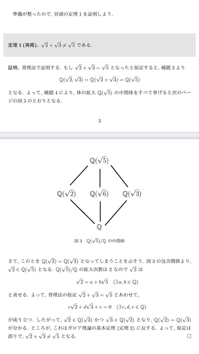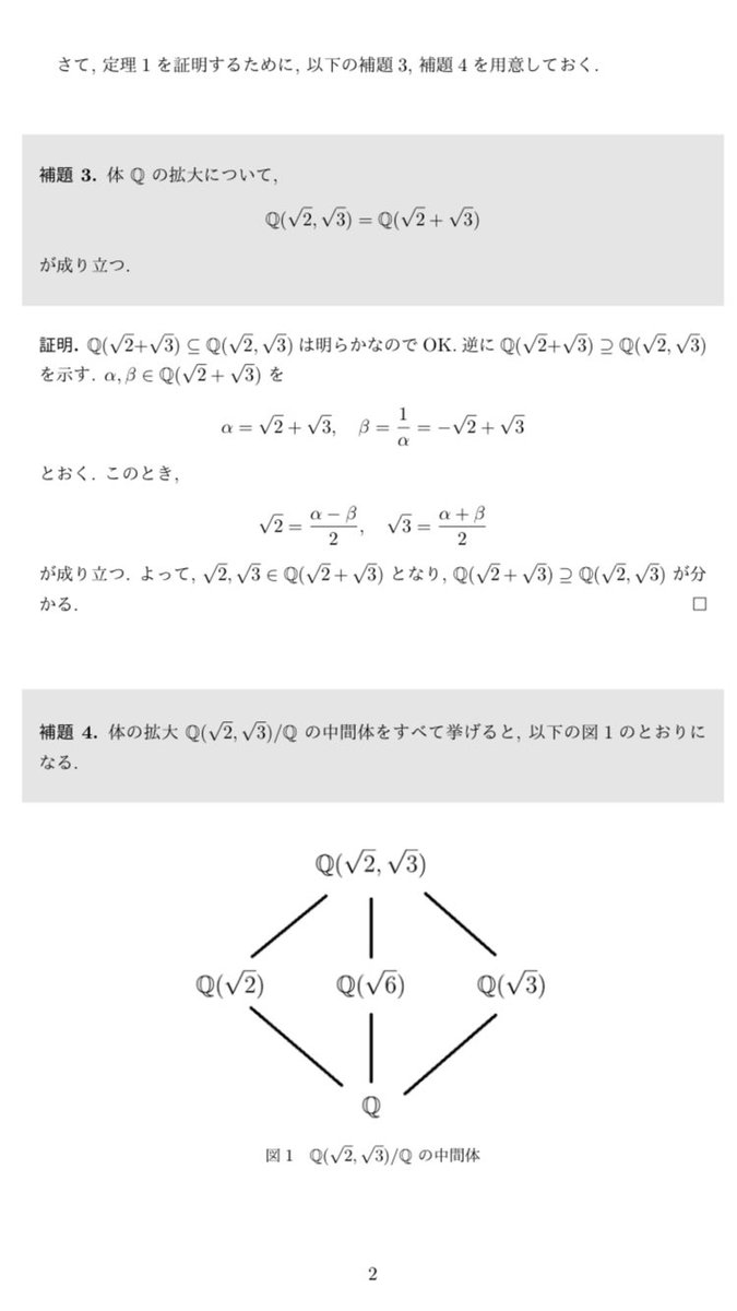 ルート √ の計算方法を知らなくても、ガロア拡大の中間体の数え方さえ分かっていれば読める内容となっています。