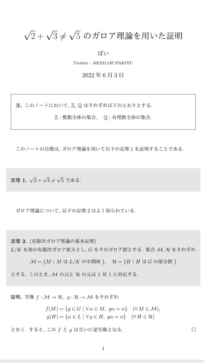 √2+√3 ≠ √5 をガロア理論で証明しました🌱