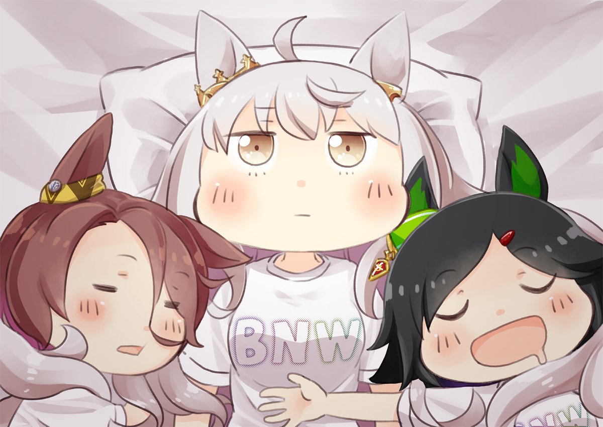 最近寒くなってきたのでハヤヒデの髪に包まれて眠るチケゾーとタイシン