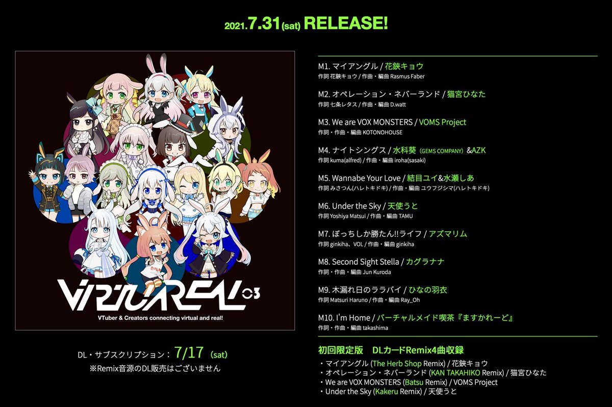 VTuberオリジナル楽曲アルバム「VirtuaREAL.03」が7月31日発売!