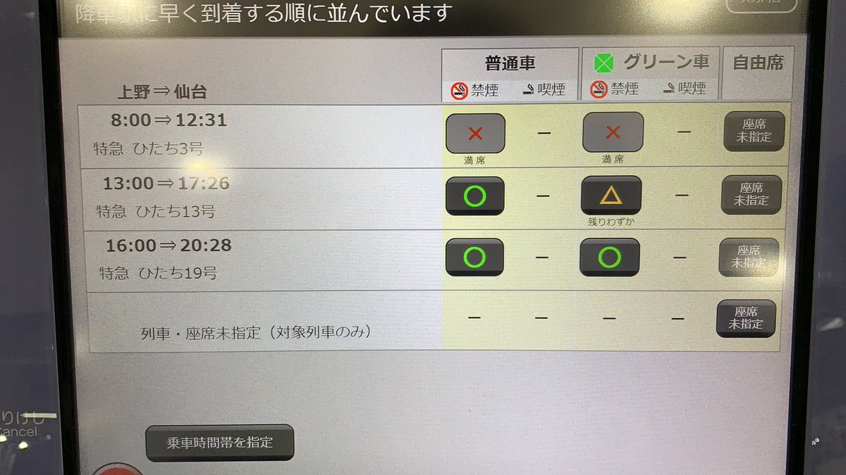 快速「ひたち」と自由席の表示はかなり珍しい。