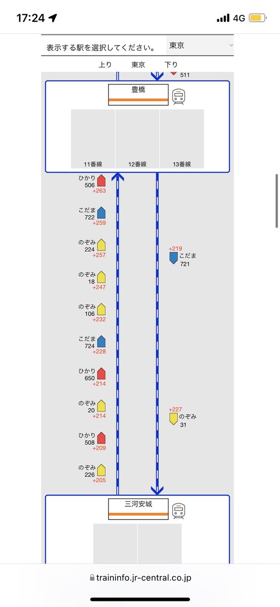 三河安城と豊橋の間に10本新幹線がいます…