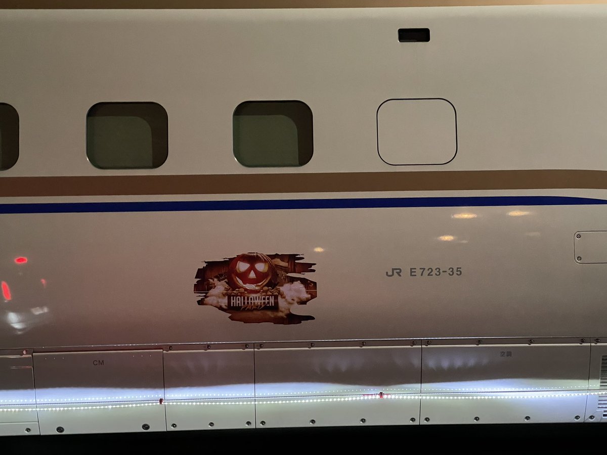 仙台に来たら偶然新幹線が陸送されてるシーンに遭遇しました😳 10月だからかハロウィンのラッピング?も!