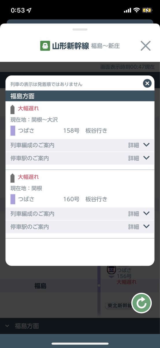 ダイヤが乱れてとんでもない行き先の山形新幹線が誕生したようです😳