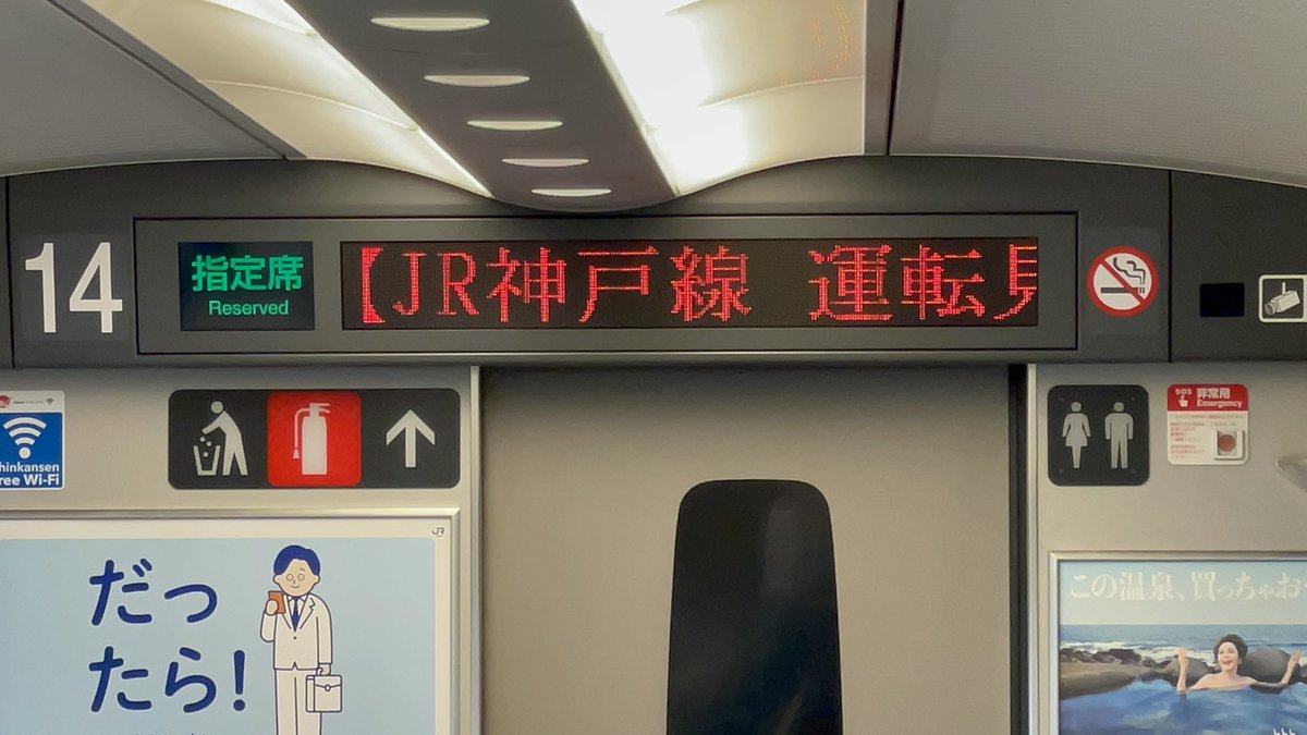 同じ車両でも新大阪を境に表示が変わります…