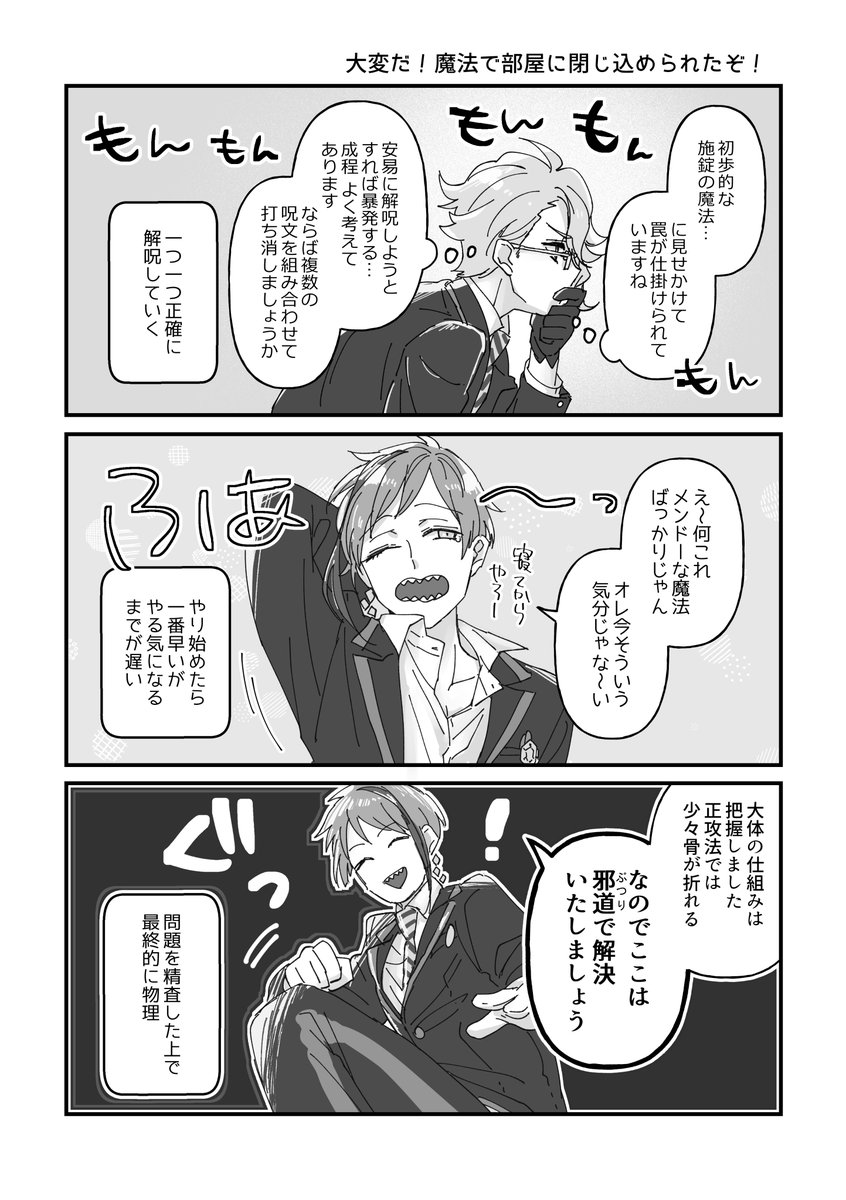描きました。魔法で部屋に閉じ込められるオクタ。