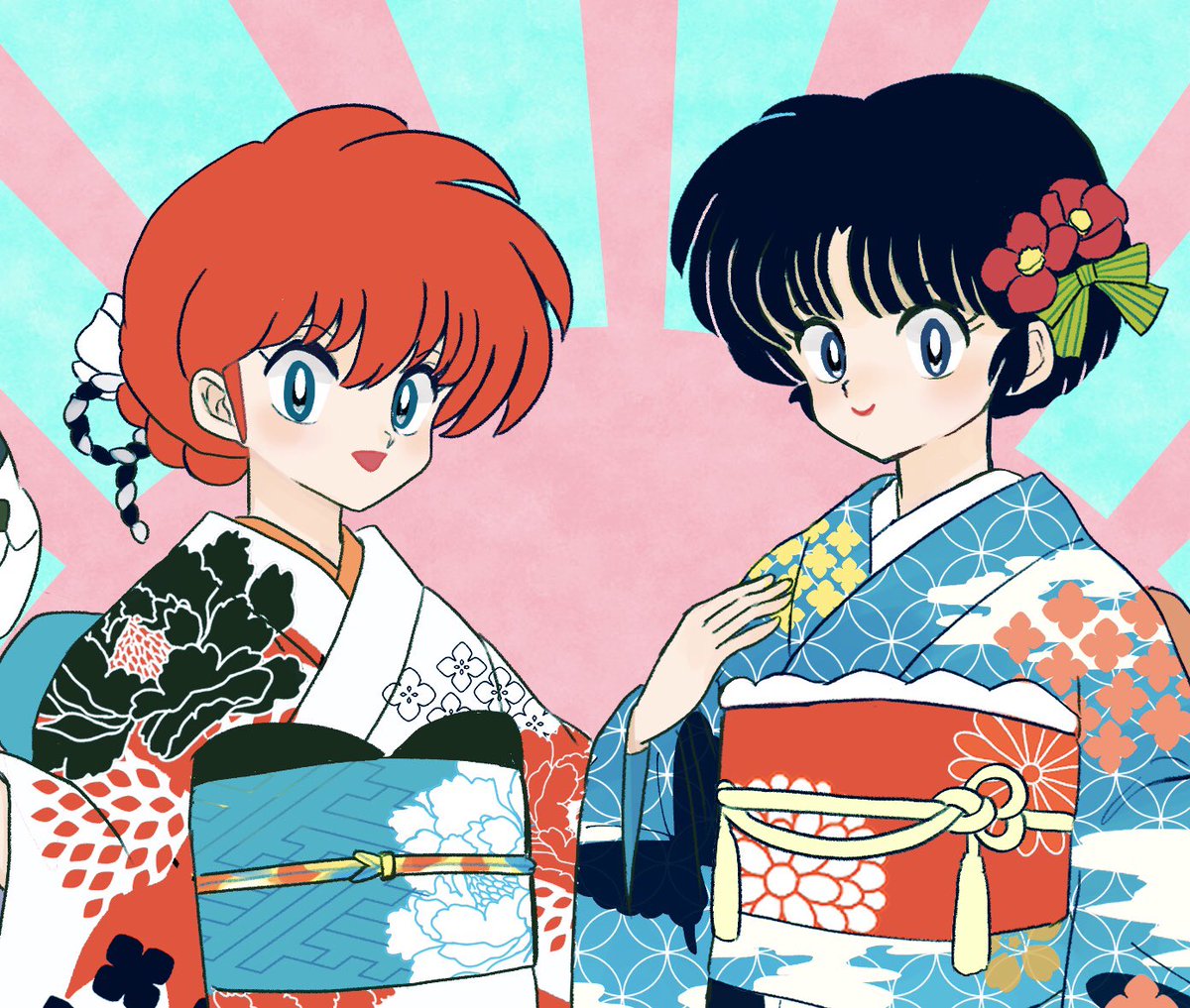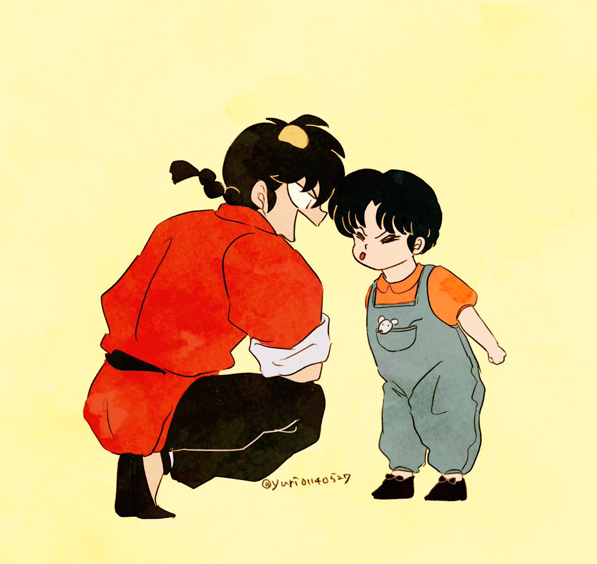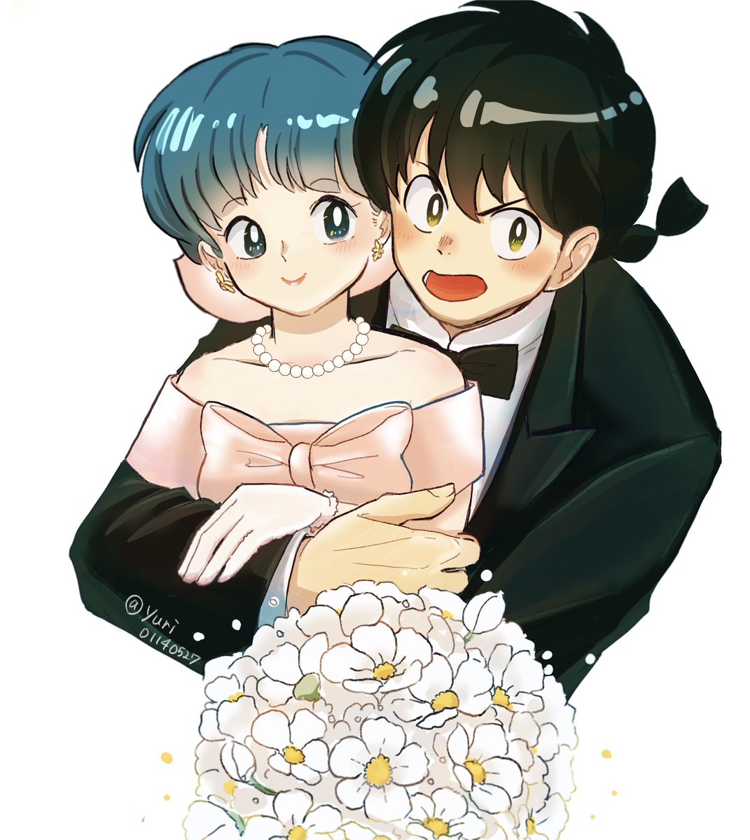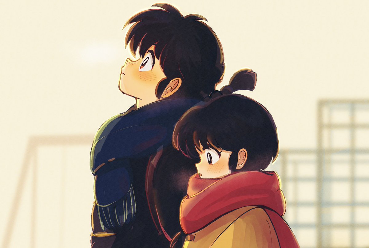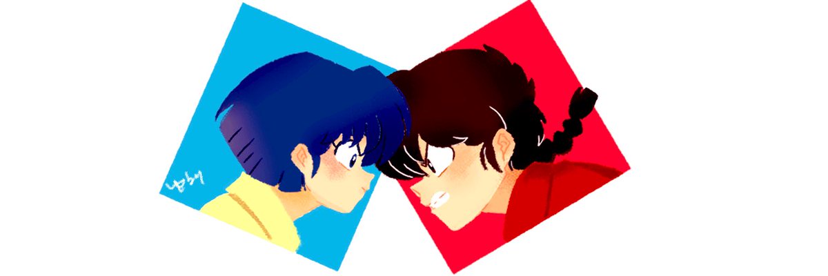 覚えてる方いないと思うけど昔描いた絵を描き直しました! お色直しをしたら肌の露出が多すぎてあかねを隠してる乱馬です🎀解説😂