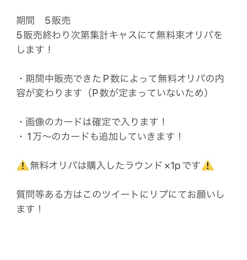 全員参加可能無料オリパ